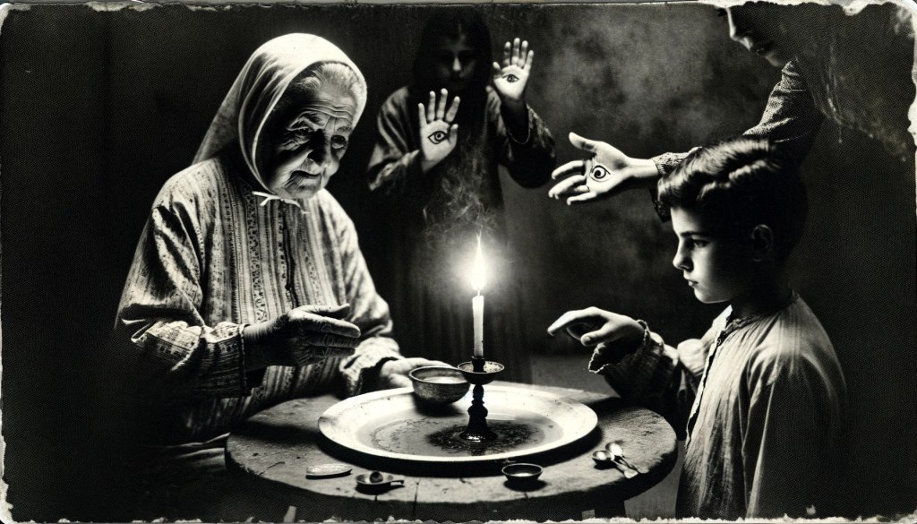 Dans ces cas-là, on allait voir une masciara. Une femme de confiance, une tante, une voisine, qui connaissait ce que les autres avaient oublié. Elle versait de l’huile dans une assiette d’eau, lisait les formes, prononçait une prière murmurée… et avec ses gestes anciens, elle libérait ce qui pesait.
